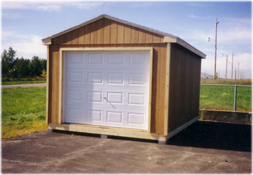 Our new economy priced garage features an 8 foot raised panel steel overhead door entrance, windows, T1-11 siding, and vents. Ideal for many of todays compact cars. Erected on your existing concrete slab.